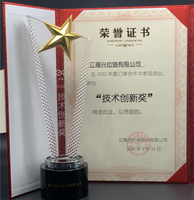 3F ZIPPER获艾莱依2022年度“技术创新奖”